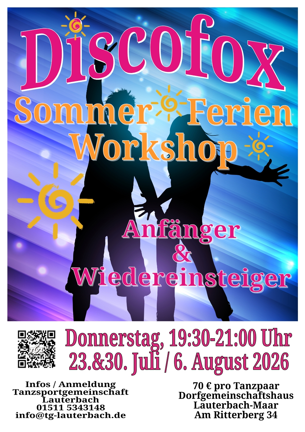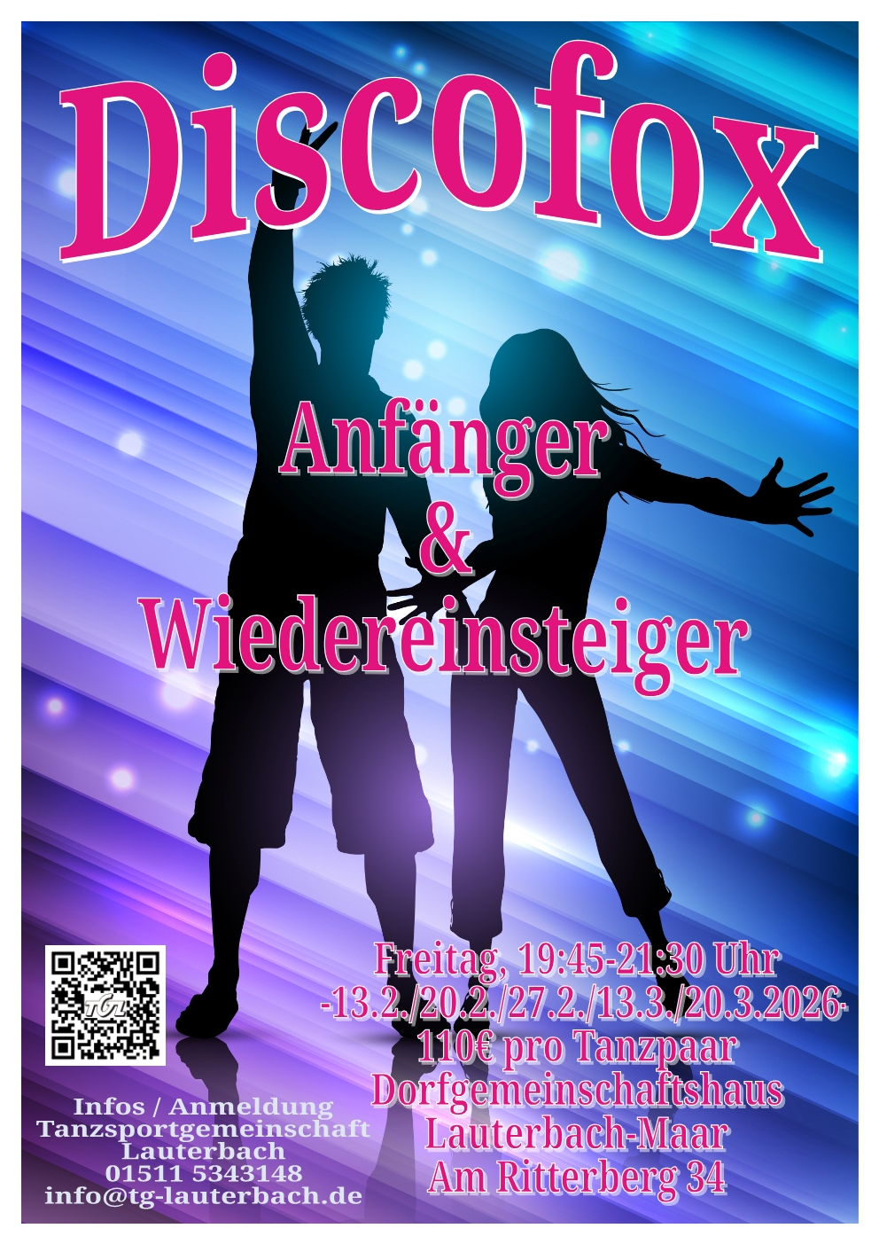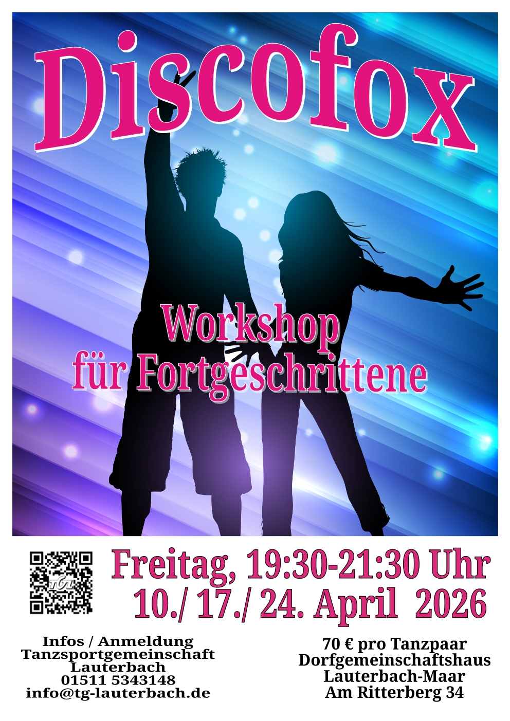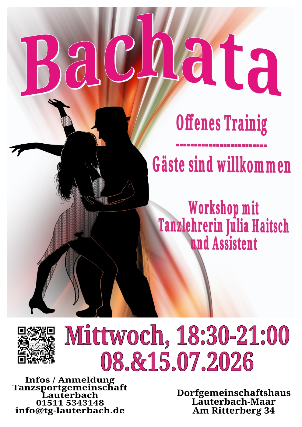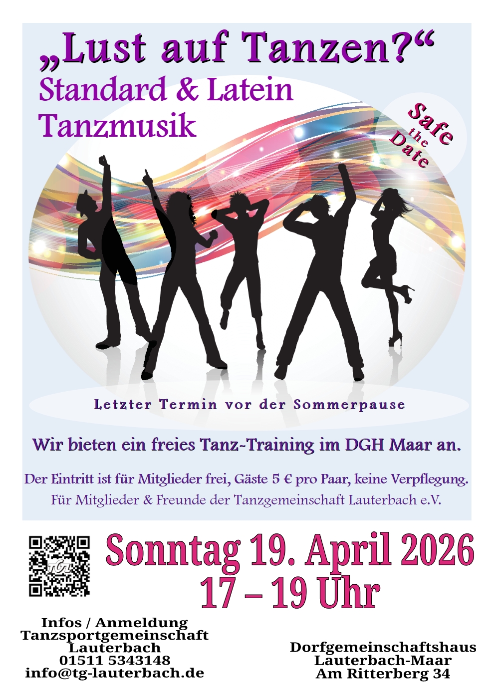 Es kann immer wieder zu Änderungen beim Tanzplatz kommen. Bitte kontaktieren sie uns, wenn sie uns spontan besuchen möchten.